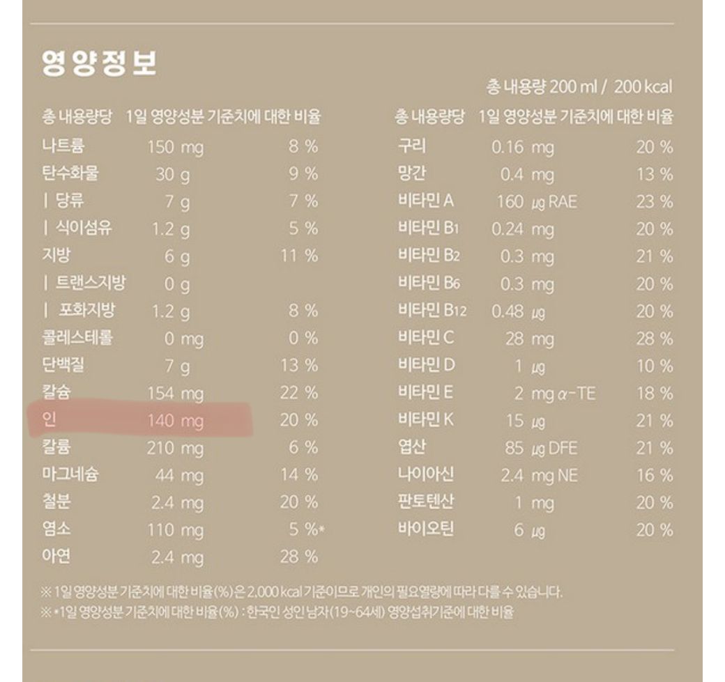 신장 환자는 인이 들어간걸 먹으면 좋지 않다고 들었은데 뉴케어에 인이 들어가긴 하네요.