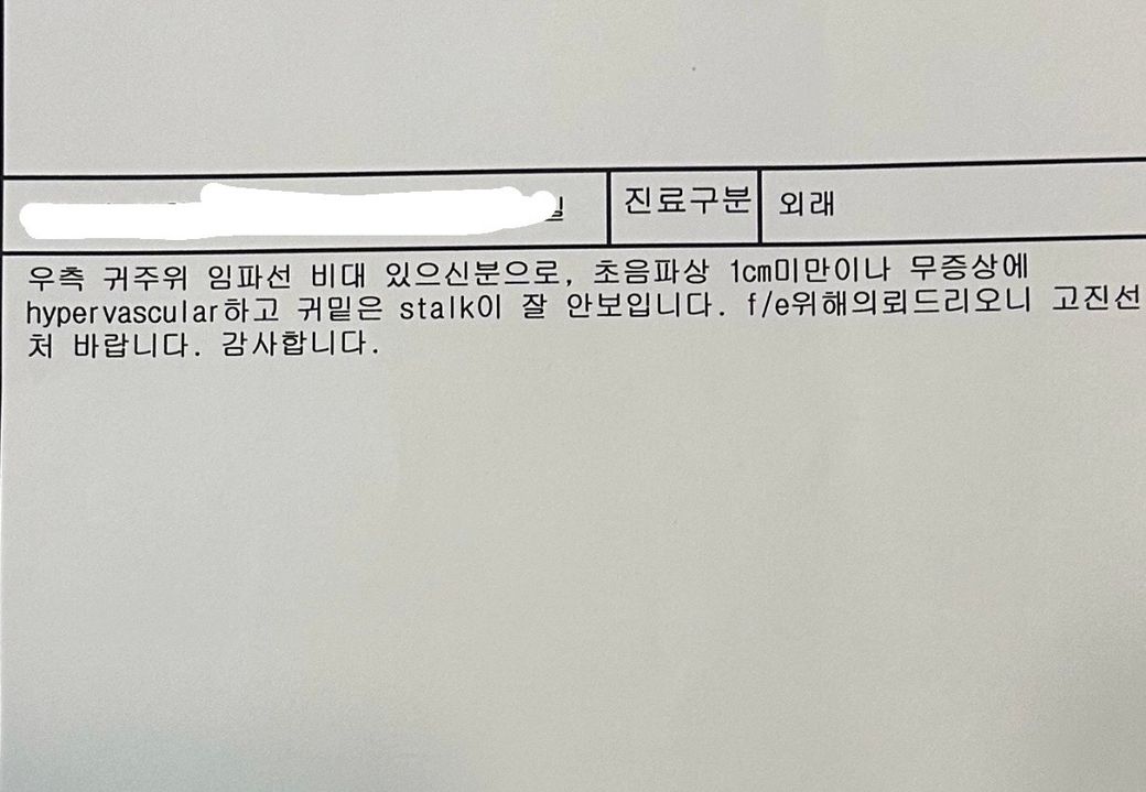 제가 작년 11월인가 12월초인가부터 귀 옆이랑 아래에 뭐가 만져지더라고요 근데 제가 지방종이 있어서 저는 당연히 또 지방종인줄 알고 더 커지면 제거해야지하다 느낌상 점점 커지는거 같아서 저번주에 병원에 갔습니다