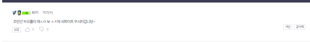 정확히 언제 달린것인지는 모르지만 여기서 말하는 '브로콜리'는 제 게임상 닉네임중 일부입니다.