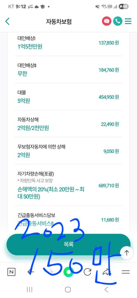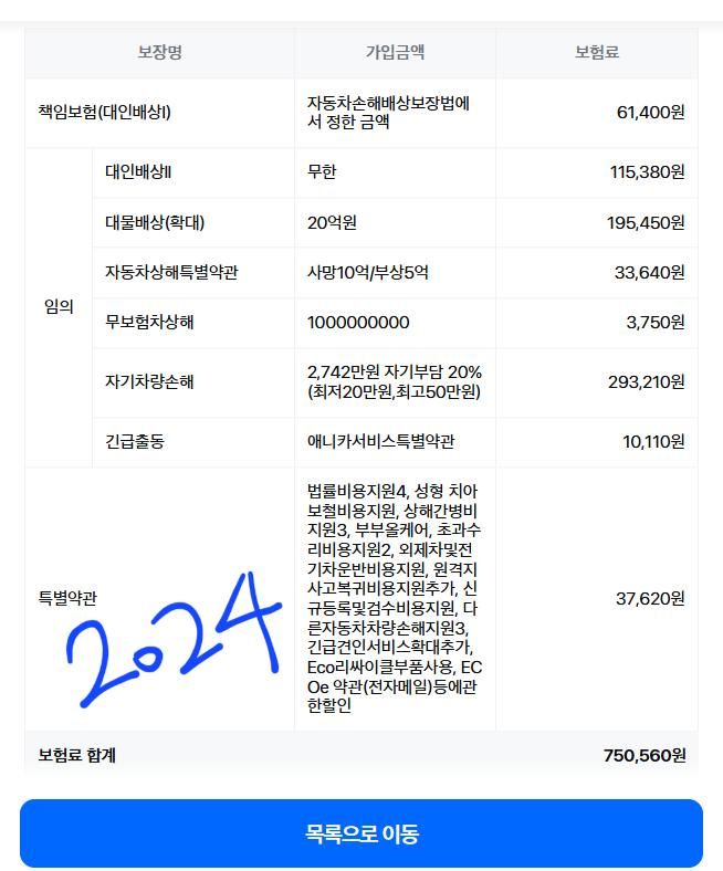 이렇게 가입인데 금액이 이렇게 차이가날수있나요? 아님 당연한건지요 궁금합니다. 2024년 무슨 할인을 받았던것도같고...한번 확인부탁드립니다.