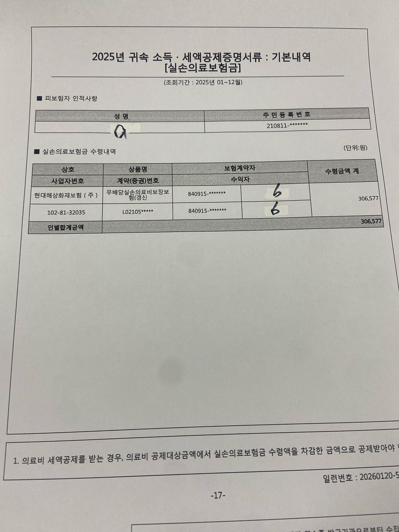 간소화 실손의료보험금의 자료상 피보험자로