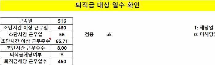 실제 근무일수는 516일이지만 퇴직금 지급에 포함되는 날짜는 460일이라고 나오더라구요