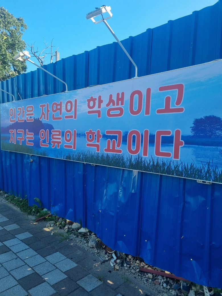 어느 공장의 담장에 다음과 같은 글귀가 현수막으로 걸려 있습니다. "인간은 자연의 학생이고, 지구는 인류의 학생이다" 처음보는 표어 입니다. 무엇을 강조하는 현수막일까요?
