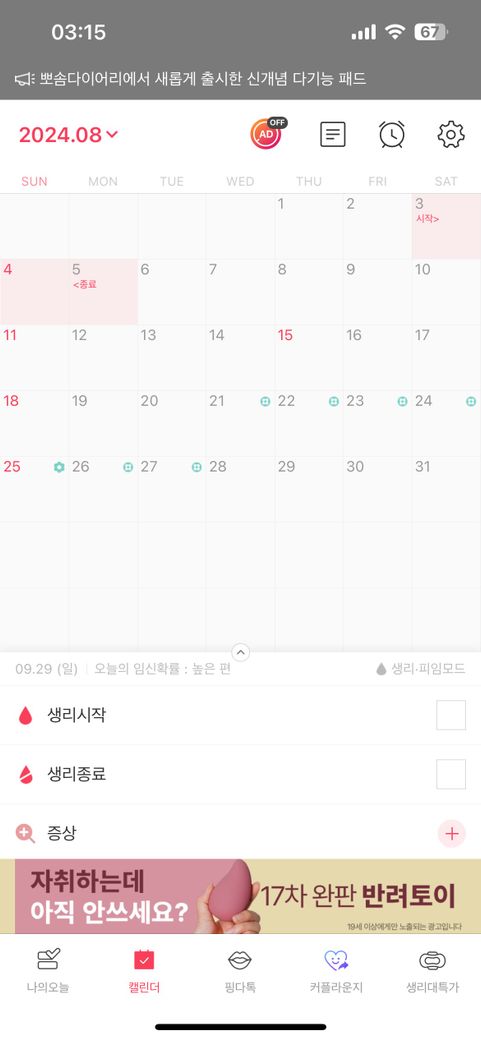 혹시 10/3 쯤에 생리 시작할까해서요ㅠ