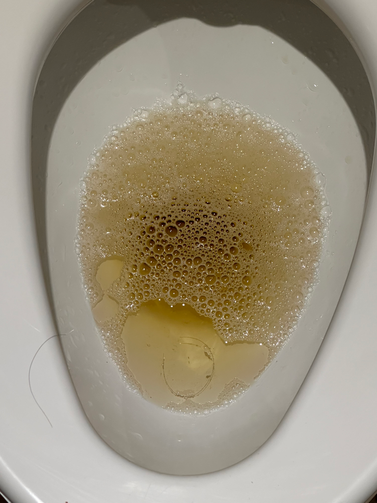 딱히 갈색 소변이라고 볼만한 소견이 있어 보이는 소변 사진이 아닙니다. 잠을 자고 일어난 직후 소변을 볼 경우 수분 보충 없이 잠을 자는 도중 소실되는 수분 때문에 소변이 농축되어서 정상적으로도 다소 진하게 보일 수 있습니다.