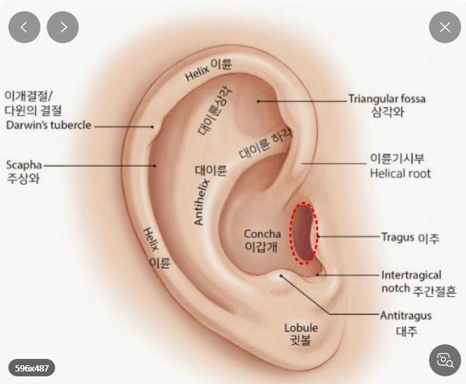 저 그림에서 제가 점선으로 표시한 부분이 유독 간지럽고 귀지가 떨어지는데요.
