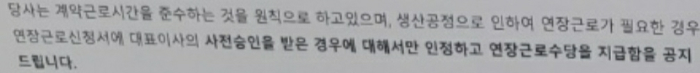 일부러 돈을받으려고 자의적으로 연장근무를 한적은 없고 근무인원이 작은데 일이많다보니 어쩔수없이 하게된것인데 회사에서는 이런입장을 내놓고 동의서에 사인을 하라고합니다.