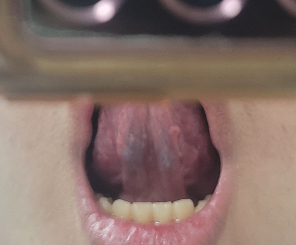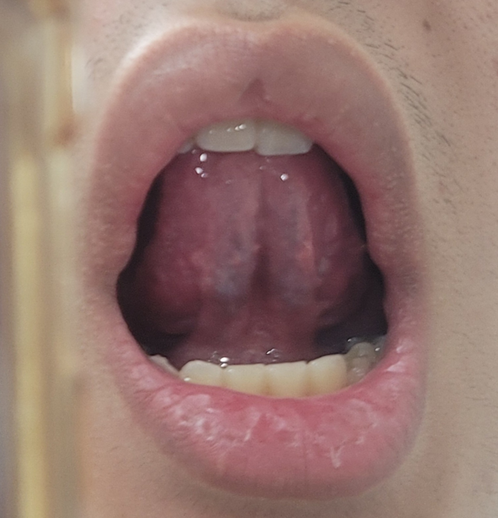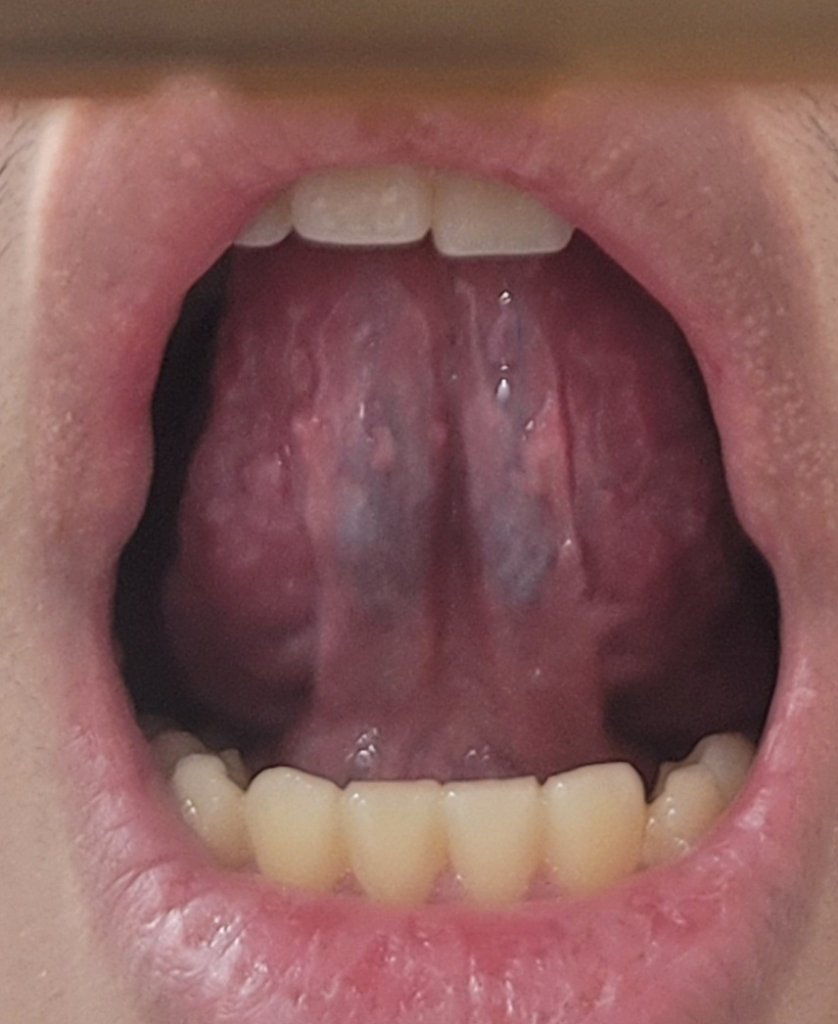 그래서 혀 밑을 보았더니 혀 밑 정맥이 정상에 비해