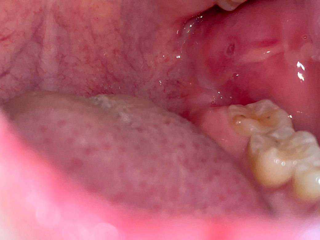 사진으로보니 구내염 난거처럼 구멍이 있어 저부분을 기점으로 위아래가 전체적으로 아픕니다