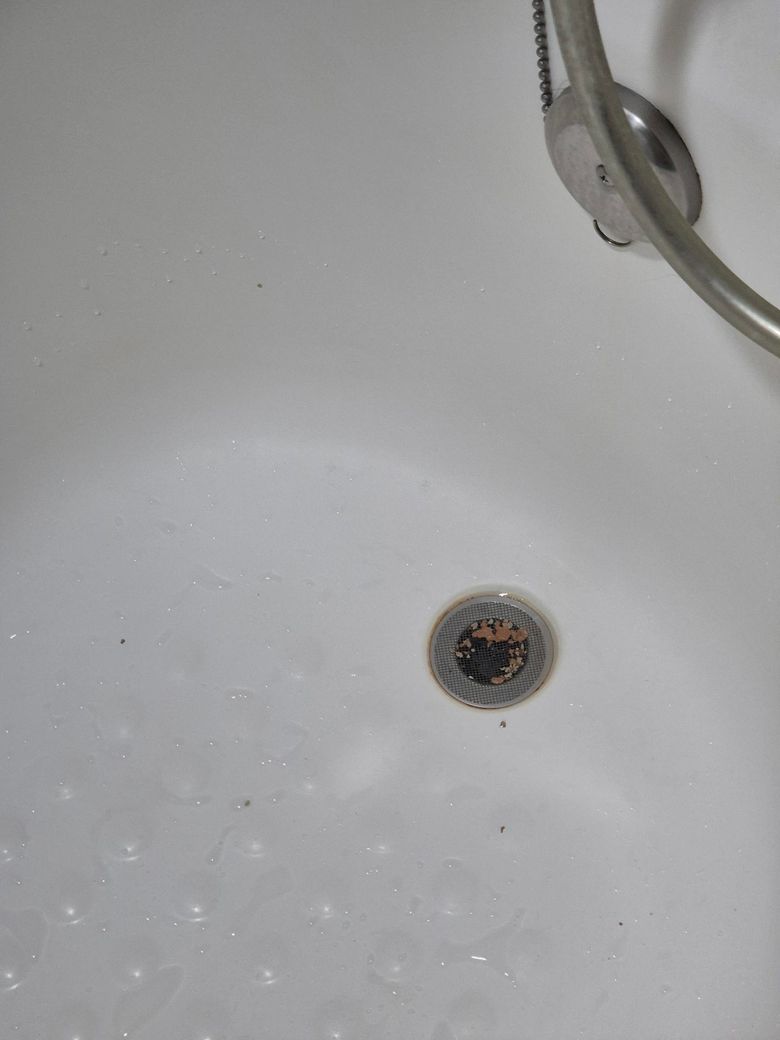 욕조 배수구 거름망에 저런 이상한 이물질이 어느순간 갑자기 생겨있네요. 분명 낮에 씻을때만 해도 이런 이물질은 전혀 없었는데.. 이게 대체 뭘까요?