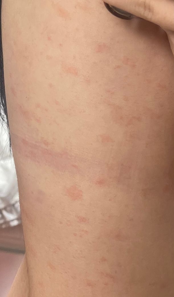 안냥하세요 20대 초반 여자입니다. 제가 이번에 허래 디스크 초기 진단을 받아 주사치료와 약을 먹게 되었는데요.. 주사 치료 후 갑작스럽게 발진이 상체쪽에 생기게 되었어요. 약 때문이가 싶어서 약은 끊었는데 증상은 더 심해졌어요..ㅠㅜ 원래 표면에 느낌은 없었는데 이제 조금씩 오돌토돌해요. 가렵진 않고 통증도 없는데 딱 정말 가슴 배 등 옆구리 쪽이 쫌 심하게 붉게 올라왔어요(사진 참고) 먹는 약 알레르기 반응 때문이라면 더 안먹으면 증상이 완화되어야하는데 더 심해져서.. 혹시 왜그런걸까요 혹시 부작용일까요? 아니면 다른 피부 질환일까요? 지금 평일이라 회사때문에 주말에 피부과를 가볼 생각입니다ㅠ 허리도 아프고 해서 더 심해지지않게 주사치료는 하고싶은데 ㅠㅠ 고민입니다 ㅠㅠ