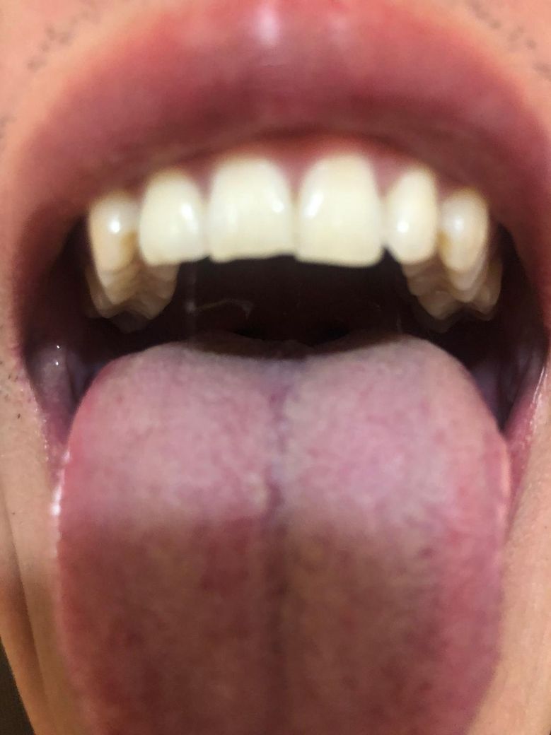 자고 일어나니 혓바닥이 누렇게 된거 같은데 설태가 껴 있나요? 이유가 있나요? 문제가 있는건 아니죠? 심각한건 아니죠? 제가 과민성대장증후군 때문에 알베릭스연질캡슐,바실리스캡슐,브로목틸정40mg,애니틴서방정 복용중입니다. 그리고 혓바닥 중앙에 일자로 되어 있는거 문제없죠? 이미지 봐주세요