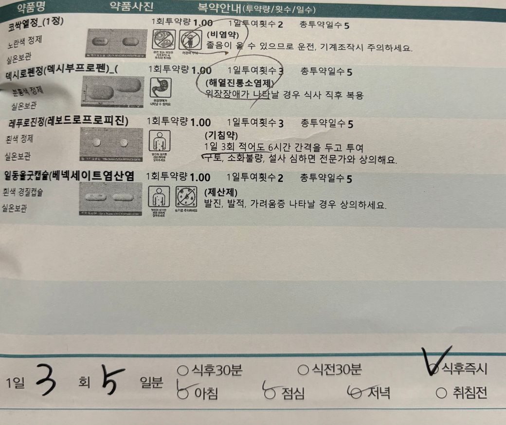 코싹엘정, 덱시로펜정, 레푸로진정, 일동울굿캡슐은 경구피임약인 센스데이큐정과 같이 드실 수 있습니다