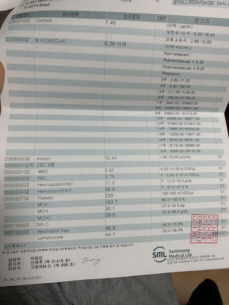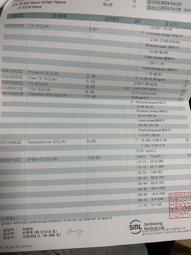 그외 다른 호르몬 수치도 정상범위로 확인됩니다.