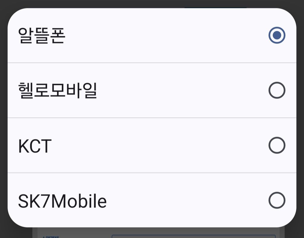 휴대폰 소액결제를 하려는데 통신사를 선택하고 사진과 같은 선택창이 뜨더라구요... 저의 휴대폰이 어디에 해당하는지 어떻게 알 수 있을까요??