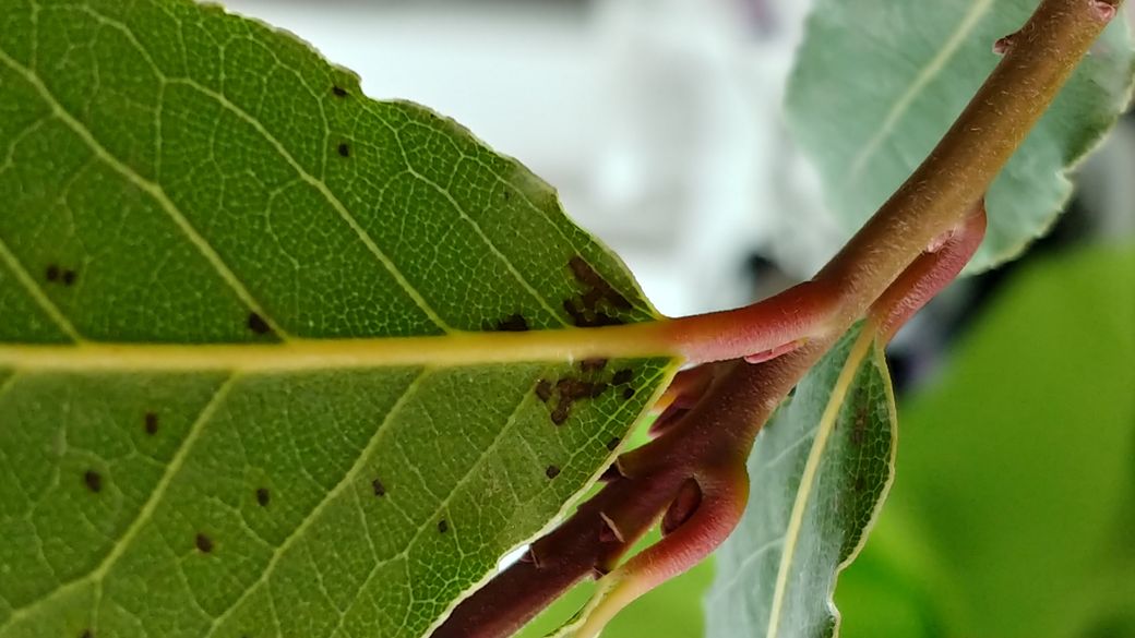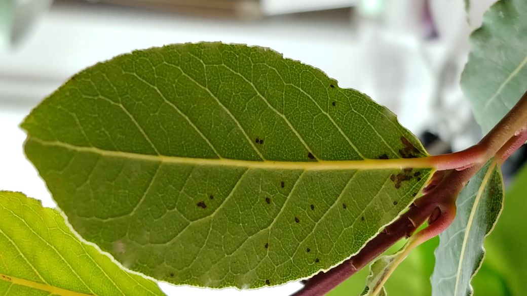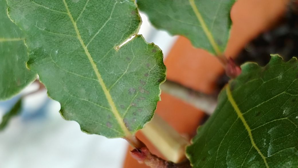 식물은 생물이니 만큼 여러가지 원인으로 인해 다양한 현상이 발생할 수 있습니다. 작은 변화가 있어도 전체적인 상황이 양호하다면 크게 문제될 것은 없습니다. 잎앞뒷면에 솜깍지벌레가 생긴거 같네요(점점이 볼록한거) 보통 음식에 넣는 월계수 잎이기에 혹시 사용한다면 이쑤시개로 걸러내시면 됩니다 약치는건 비추