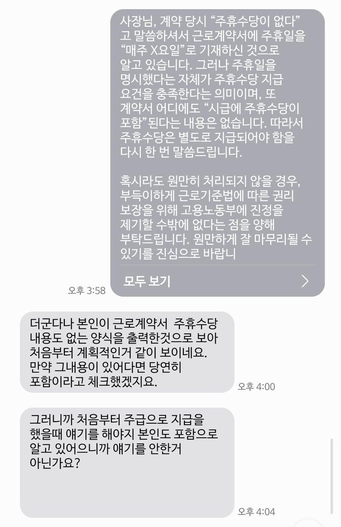 주휴수당 임금체불에 관하여 협박 비스무리하게 문자를 받았습니다.