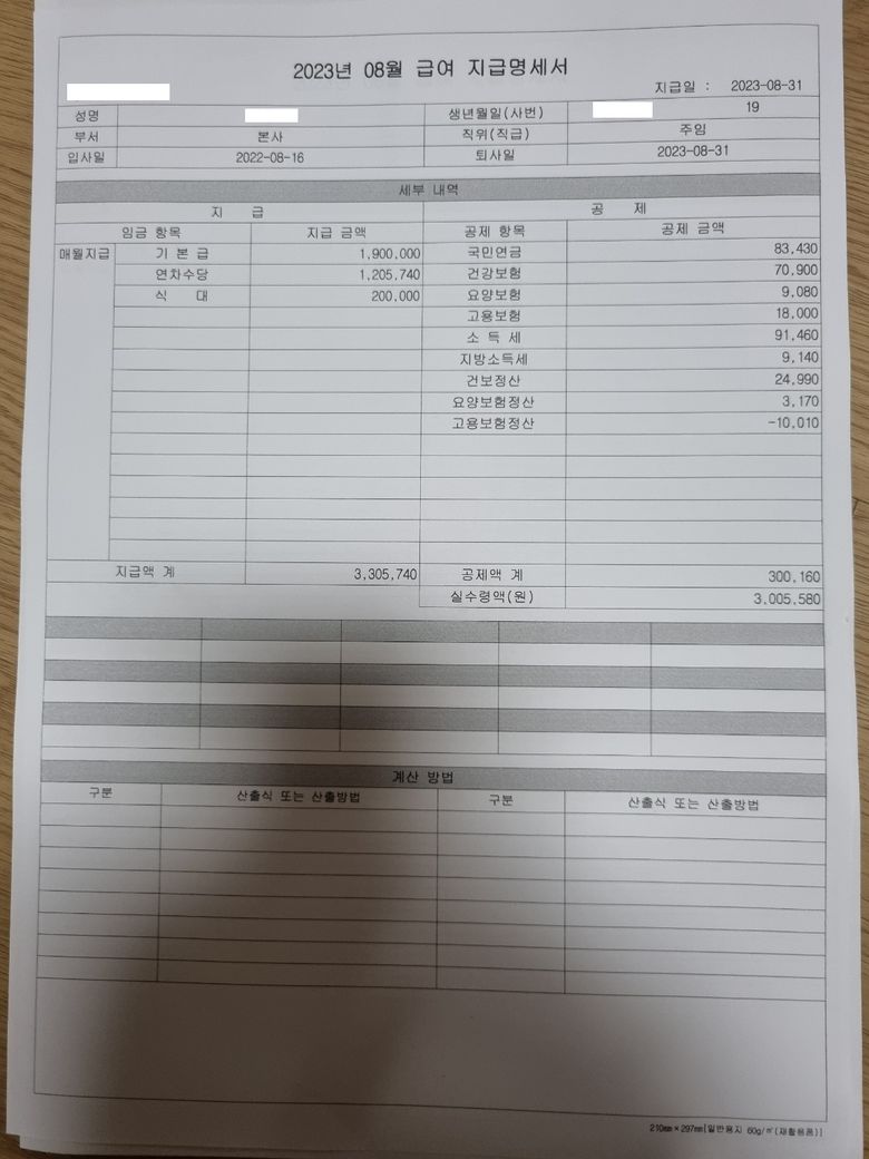 제가 작년 8월 16일 입사였는데 올해 8월 31일까지 근무하고 퇴사하였습니다.