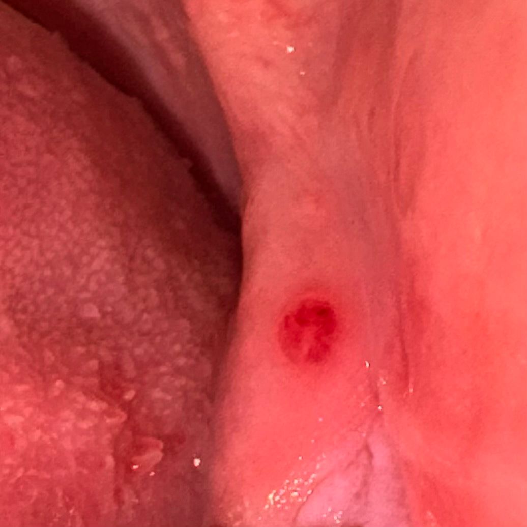 잇몸이 치아에 씹혓거나 다른 자극에 상처가 생긴거니 크게 걱정하지 마시고 자극만 가지 않도록 해주세요.