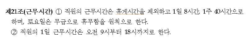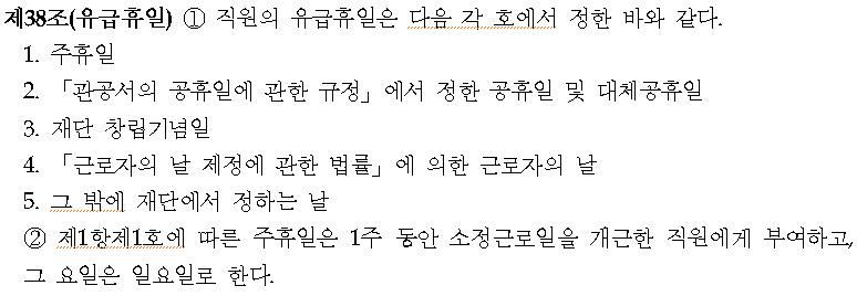 내규에 따르면 토요일은 무급으로 휴무지만, 유급휴일 내용에는 주휴일(일요일)이 유급휴일로 되어 있습니다.
