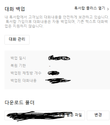 근데 제가 pc카톡 설정을 보니 톡서랍을 이용중이라서 그런지 알아서 백업이 되어있더라고요
