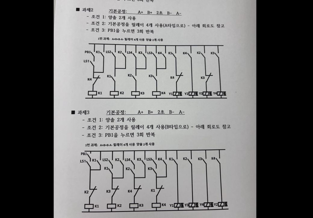 과제2는 4개의 릴레이만 사용하여 시퀸스의 2초와 3회 반복 카운터 기능을 구현하는 것은 매우 어려워 보입니다.