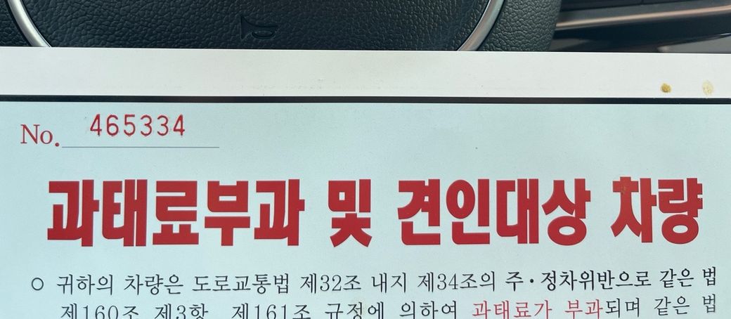 자동차 주차위반 과태료 집으로 날라 안오고 그냥 문에 종이가 껴져있었는데 이거 과태료 인가요??