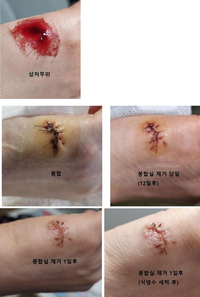 병태생리적으로 손 부위는 장력(tension)이 높은 부위라 봉합 제거 시점이 조금만 빨라도 쉽게 벌어질 수 있습니다. 특히 손날 부위는 움직임이 많아 이런 현상이 흔합니다.