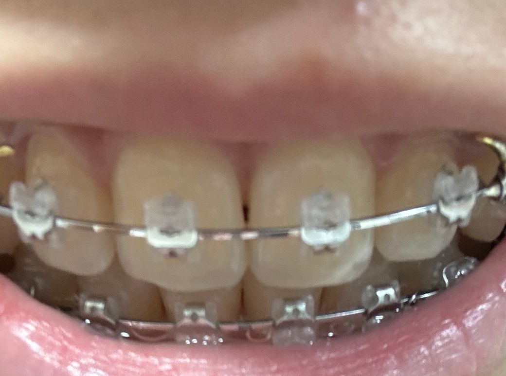 교정이 마무리 된게 아니라서 일단은 교정이 마무리되고나서 공간이 많이 넓어져서 블랙트라이앵글이 비심미적이라면 레진 또는 크라운 치료를 하셔야될수도 잇을것같습니다.