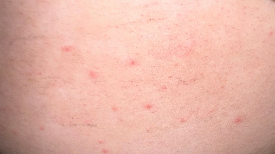 어제 저녁 갑자기 복부 왼 쪽 부분만 빨간 점들이 올라왔습니다.. 단순 모낭염인가요..?