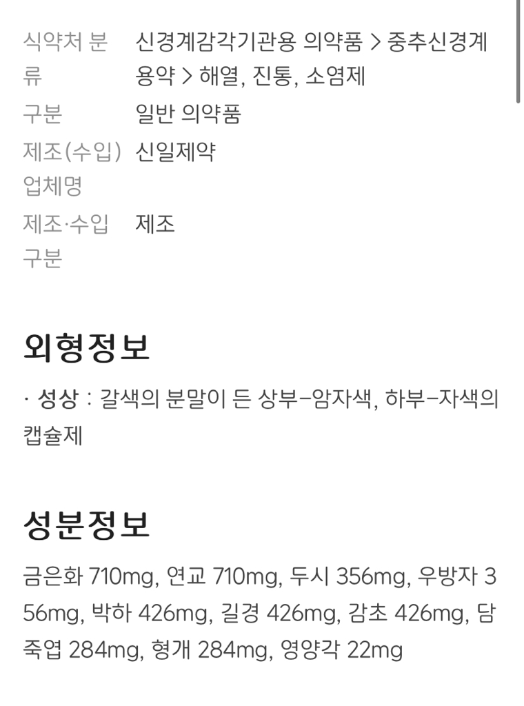 현재 복용하시는 생약제제 일반의약품은 은교산으로