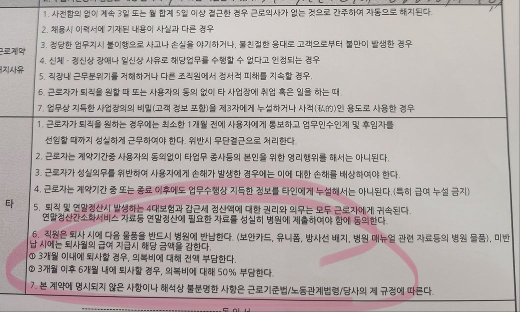 근로계약서를 쓸때 3개월 이내 퇴사시 유니폼비 100%지급해야한다는 항목이 있었고 그에 동의하였습니다,,,이후 3개월 이전 퇴사를 하게 되었는데 제가 동의를 했기때문에 지급해야한다는 댓글과 아니라는 댓글이 있어서 여쭙고싶습니다