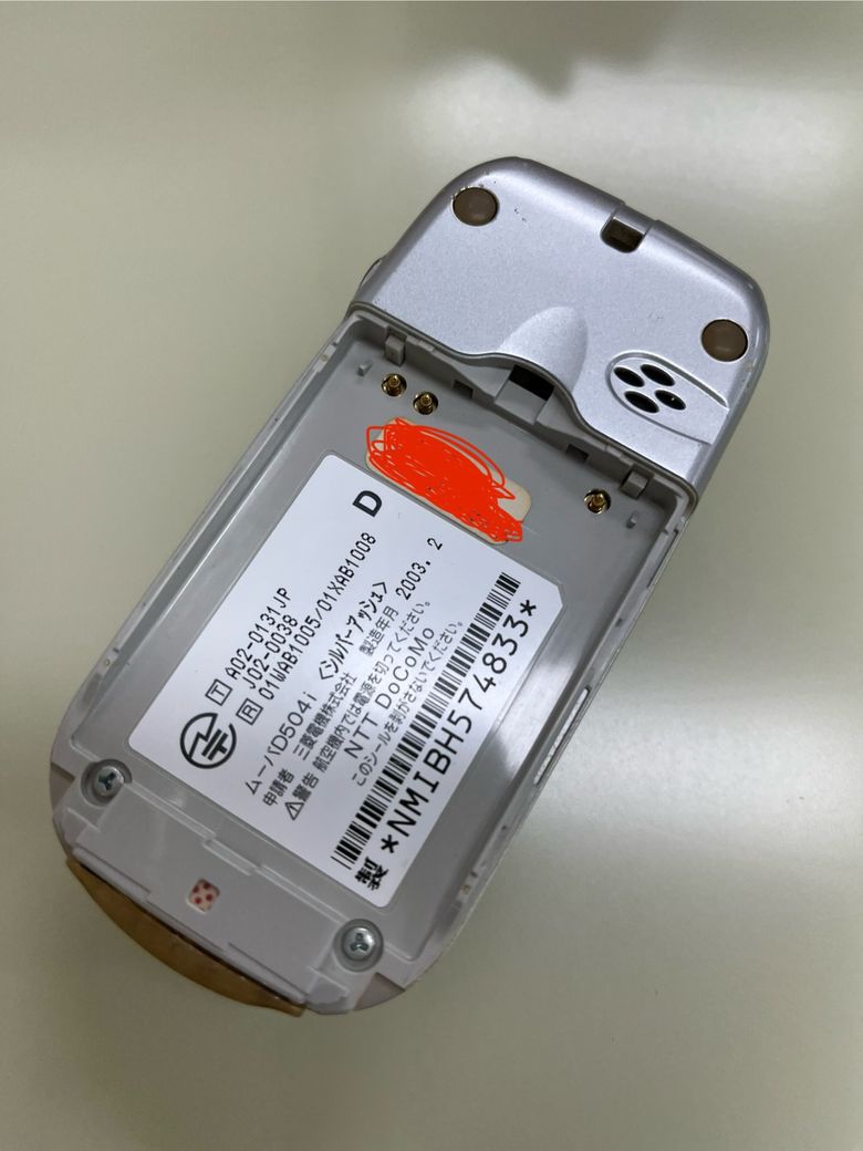 중고로 일본 도코모 핸드폰 모형을 구매했는데 실제 작동이 되는 기종이었더라고요!! 배터리는 없고 사진 가려진 부분에 전화번호가 적혀 있어요 기종은 D504i 입니다!! 배터리가 없는데 어떻게 하면 구할 수 있을까요? 일본에서만 구할 수 있는 건가요?