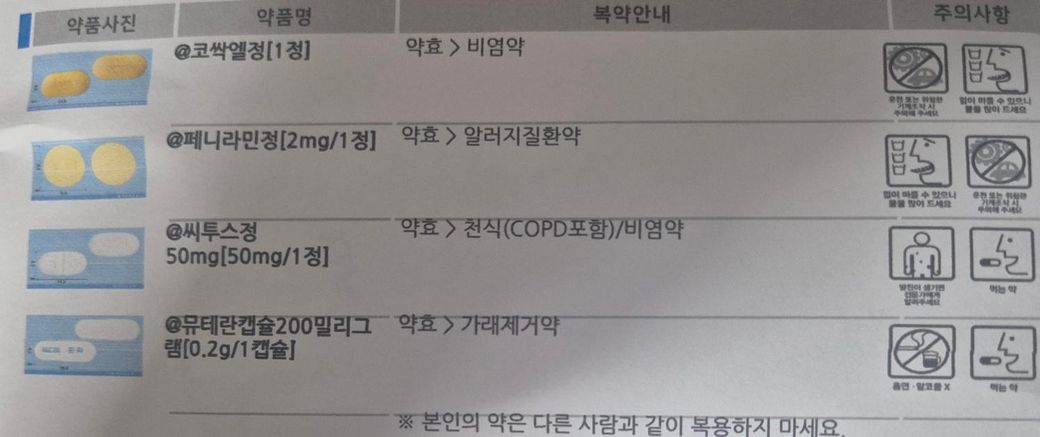 평소에는 항상 미리 의사선생님께 말씀드리고 피해서 처방을 받는데, 이번에는 까먹고 말씀을 못드렸네요 ㅠㅠ