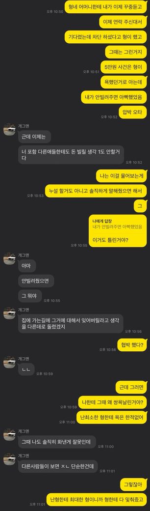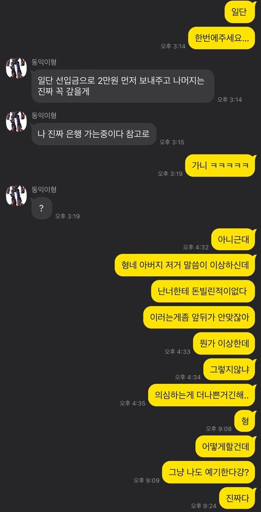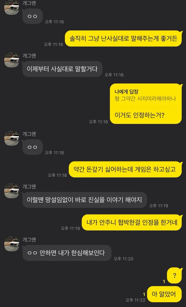 뭐 이런식으로 저한테 게임에 제계정으로 현질해서 상대방이 원하는 아이템 나오면 주는식이었는데 제가 그래서 상대방한테 돈갚으라고 말했었고 상대방도 갚아야하는걸 인지하는상태입니다 또한 상대방은 저한테 상습적인 거짓말로 돈갚는걸 피하고 추후엔 돈주겠다고 한날이후로 차단박고 도망을 갔습니다.. 저는 또한 상대방부모님한테 심한욕설을 먹었고 녹화는 못했습니다..다만 상대방과 제3자 (같이있었어요) 사과한걸 가지고 있습니다