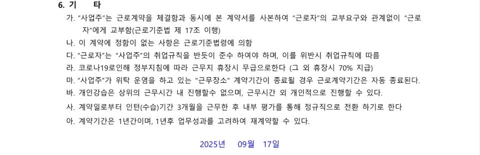 이렇게 근로계약서에 명시 되있고