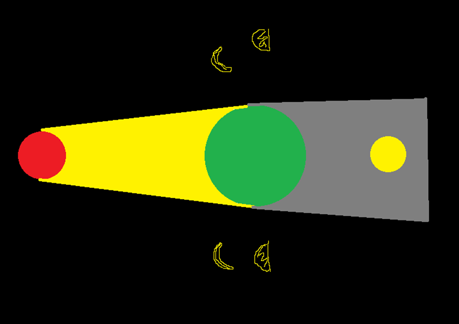 지구가 태양을 중심으로 공전을 하고 달은 지구를 중심으로 공전을 하는데요. 그 과정 중에 일직성이 되면 태양의 빛이 가려져 그림자가 생깁니다.