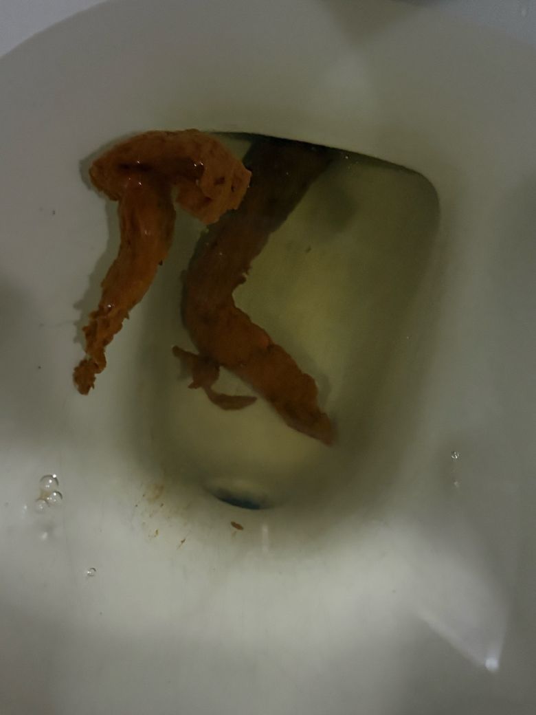 이 정도면 많이 얇은변 인가요? 최근에 계속 얇은변 비스무리하게 누고 있는데 이 정도면 많이 얇은편인지 알수 있울까요?? 변 색깔은 정상인거 같아요