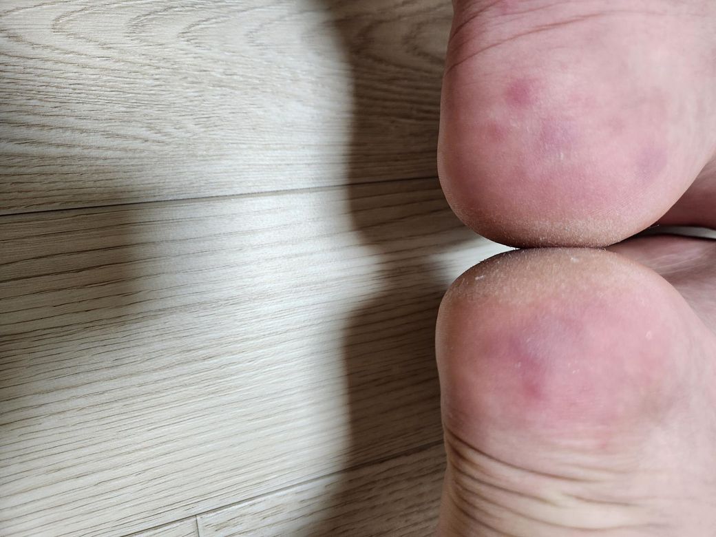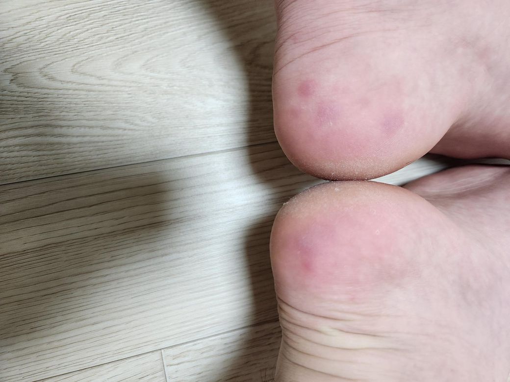 예비군 4일 동안 군화를 신고있었는데 너무 눌려서 저런 건지 무좀이 걸린 건지 아니면 오늘 냉동치킨을 좀 많이 먹었는데 두드러기가 난 건지 궁금합니다.