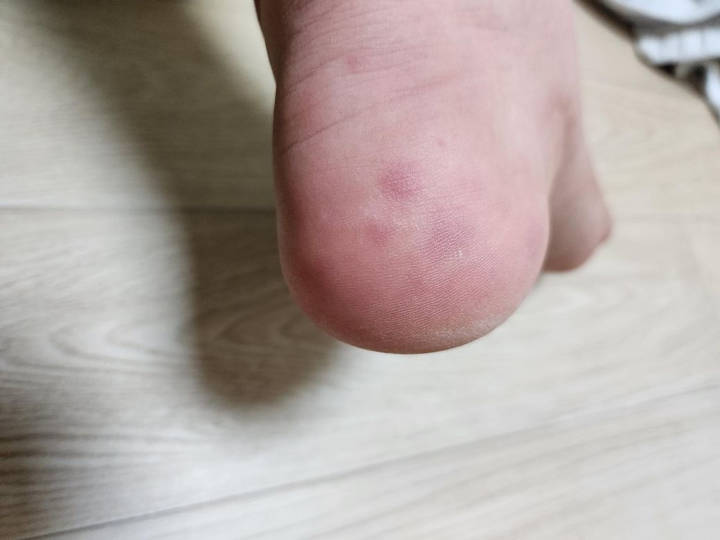 발 뒤꿈치에 빨간 점이 여러 개 났습니다.
