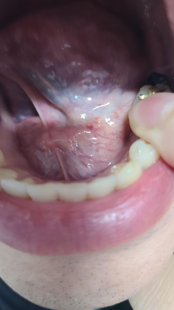 혀 밑에는 굉장히 다양한 조직들이 있는데요 사진상으로 특별히 이상소견은 관찰되지 않아 걱정하지 않으셔도 될 것 같습니다. 다만 추후에 통증이 발생한다거나 해당 부위가 커질 경우에는 치과에 내원해보시는 것을 추천드립니다.