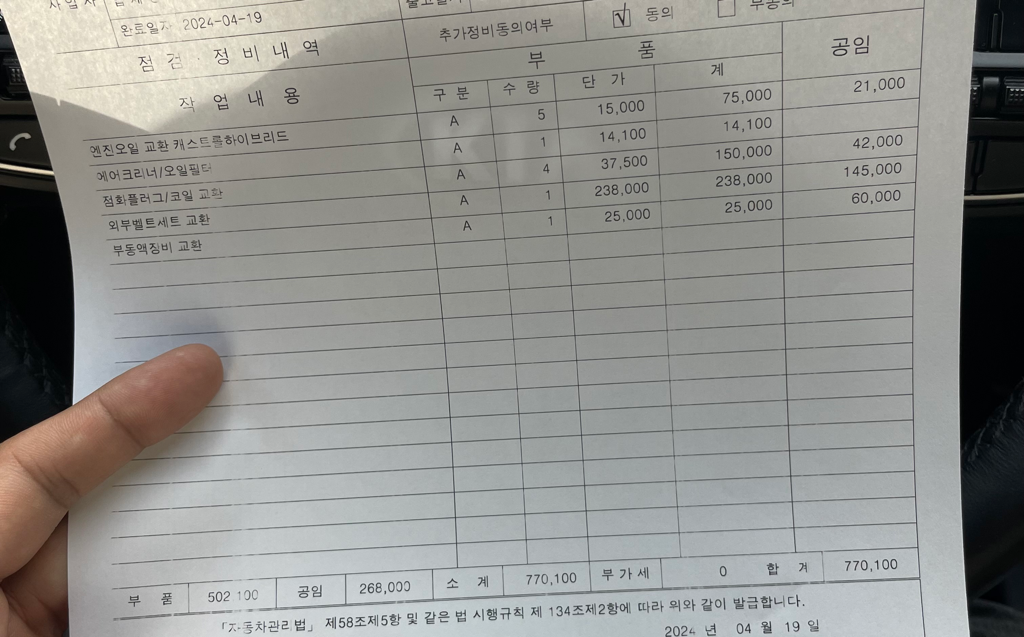 외벨트세트의 가격도 비싸네요. 댐퍼풀리랑 워터펌프까지 교환한거라면 이해가 갑니다만, 댐퍼풀리 교체하지 않았다면 비싸군요