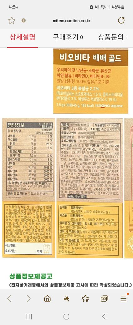 첫번째 사진은 유산균 30포당 영양성분인거같아요