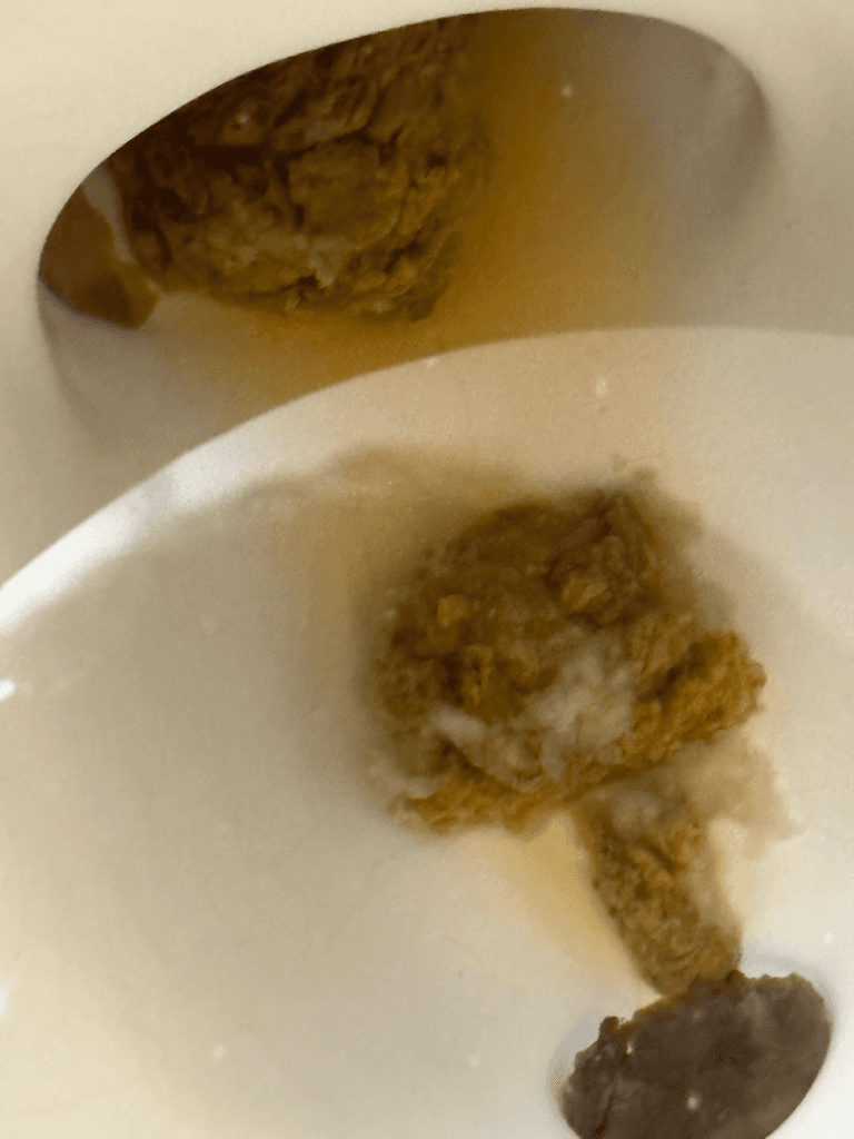 오늘 아침에 이런 변을 봤습니다 혹시 점액 변일까요? 대장내시경한지 얼마되지않았는데 다시 대장내시경을 해봐야할까요? 요즘 스트레스를 많이 받긴하는데 좀 걱정되네요