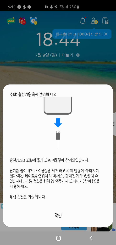 6시간 넘게 저 알람이 뜨면서 충전이 안되네요