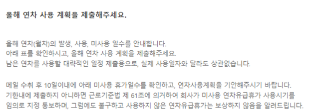 연차사용촉진제도 이메일로 제목과 내용을 뭐라고 써서 보내야 할까요?