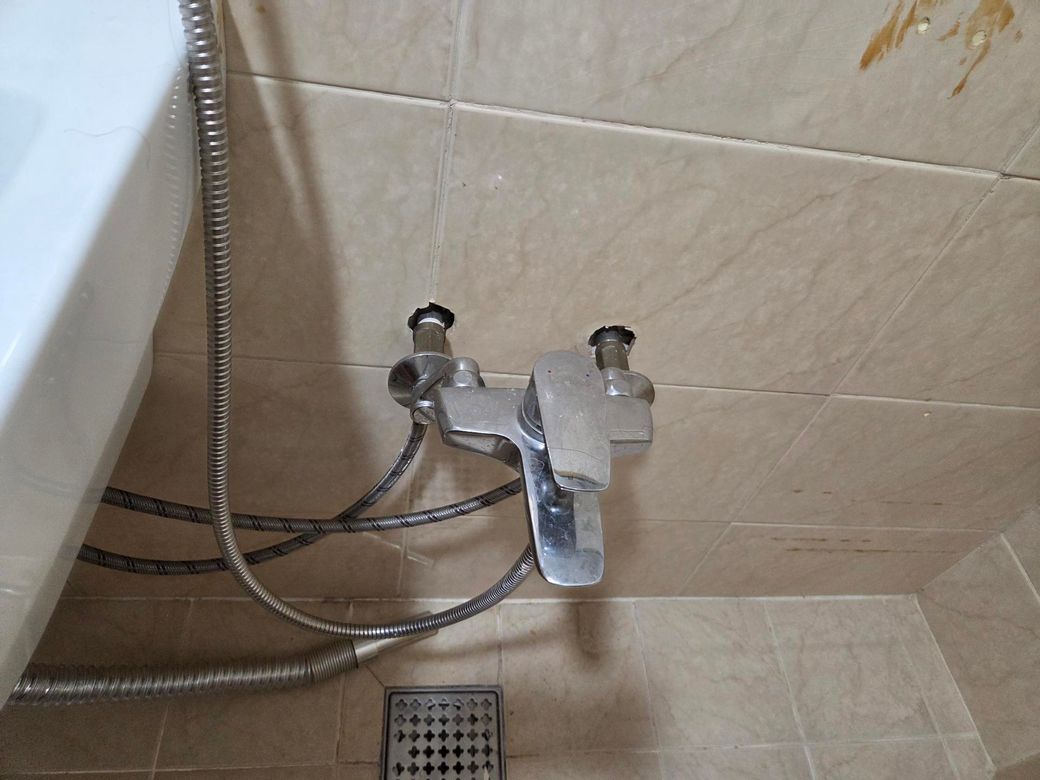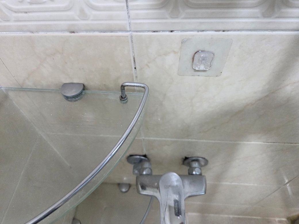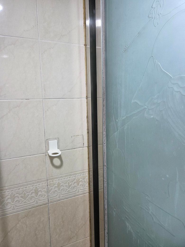 그리고 샤워기 수전이 벽에서 좀 많이 튀어나와 있고 수전 주변 벽에 구멍이 그냥 뚫려 있습니다.