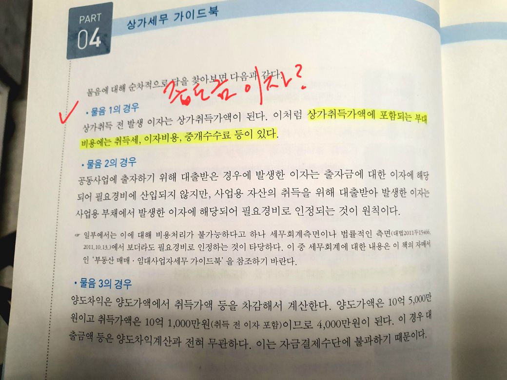 1. 상가취득전 발생하는 이자가 뭐가 있으며?