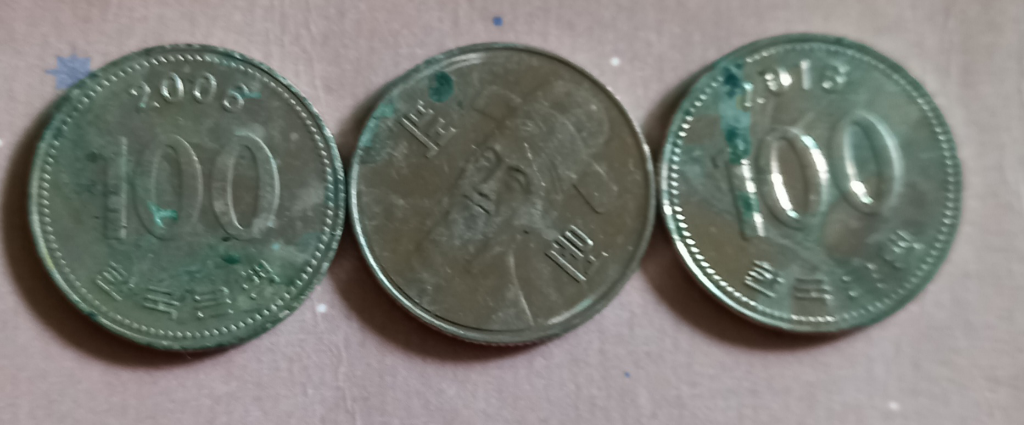 동전도 하나의 금속이기에 녹이 생기는건 당연합니다.