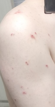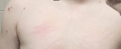 가슴부분입니다. 계속 긁어서 빨갛게 상처가낫어요 .